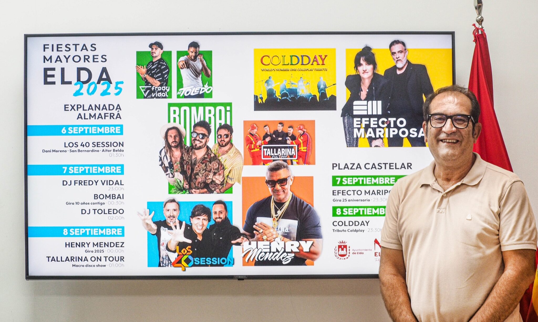 La fiesta arrancará el 6 de septiembre, en la explanada del Nuevo Almafrá, con el show de Los 40 Session que llega a Elda de la mano de Dani Moreno, San Bernardino y Aitor Belda.