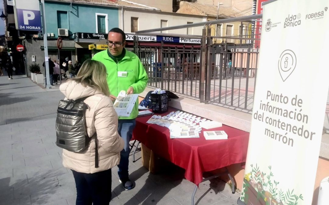 Los educadores ambientales del Ayuntamiento de Elda continúan llevando toda la información posible sobre la correcta separación de residuos a todos los rincones de la ciudad. Así, junto a la campaña puerta a puerta que se sigue realizando por los diferentes hogares de Elda, también se van a volver a instalar puntos fijos en lugares concurridos de la ciudad para reforzar toda esta información y poder llegar a más vecinos y vecinas.