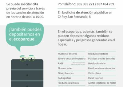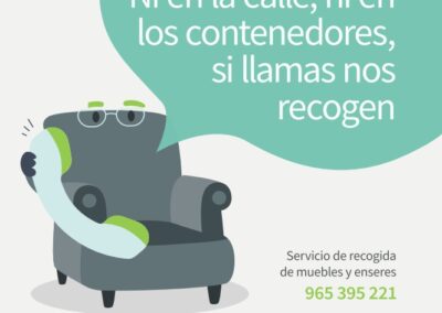 Además, para reforzar esta campaña puerta a puerta, a partir del mes de febrero se instalarán puntos informativos fijos todos los martes para ofrecer información a la ciudadanía acerca del servicio de recogida de enseres gratuito que se realiza a través de Fobesa, y en la que se puede pedir cita a través del teléfono 965 395 221.