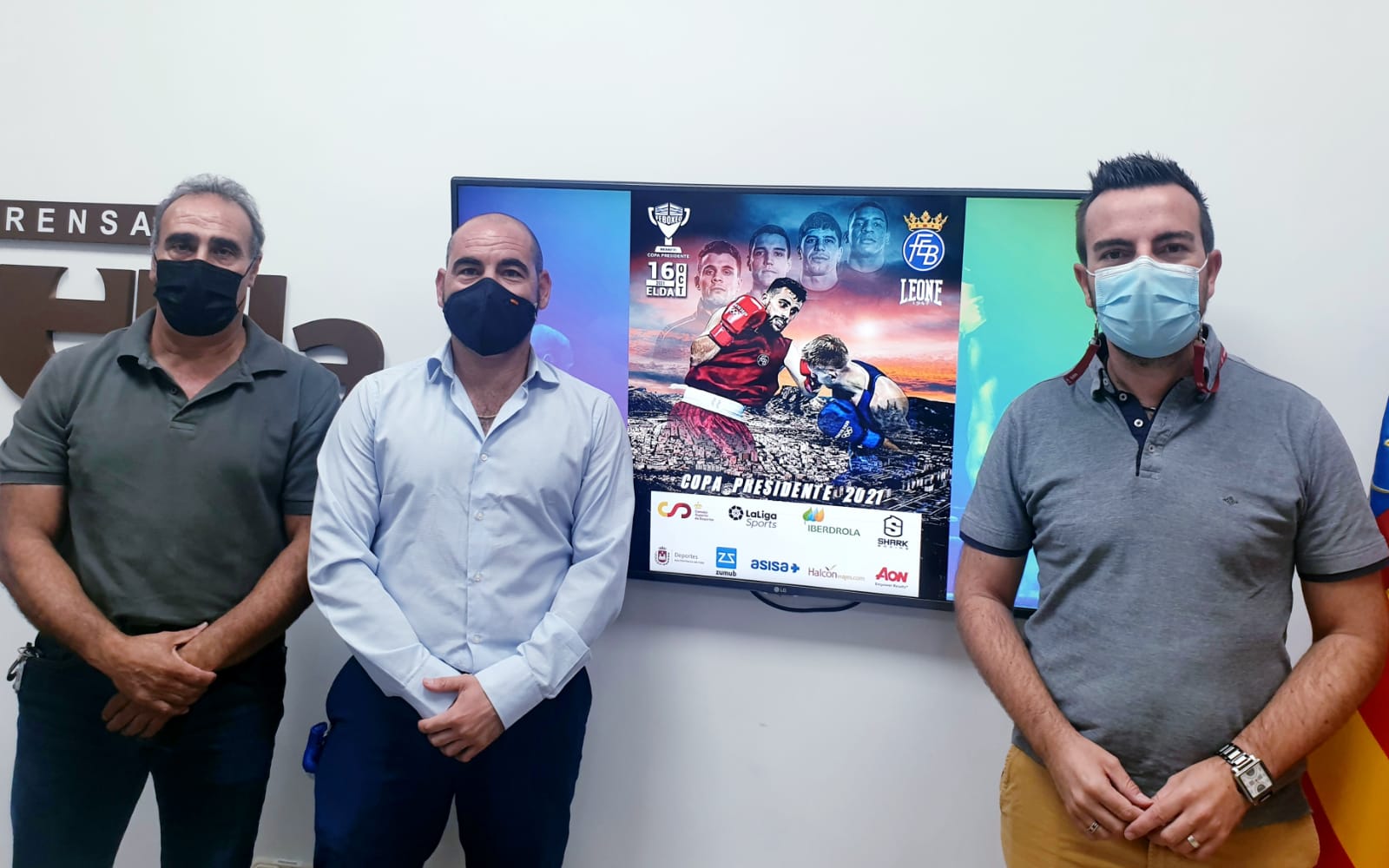 El Pabellón Juan Carlos Verdú de Elda acogerá el próximo 16 de octubre la IV edición de la Copa Presidente 2021 de boxeo. El concejal de Deportes, Fernando Gómez, acompañado de Felipe Martínez, presidente de la Federación Española de Boxeo, y de Diego Quiles, padre del boxeador eldense José Quiles, ha explicado que “la Copa Presidente, creada por el actual presidente de la FEBox, tiene como objetivo enfrentar a los mejores boxeadores del territorio nacional con los boxeadores que en la actualidad son miembros del Equipo Nacional”.