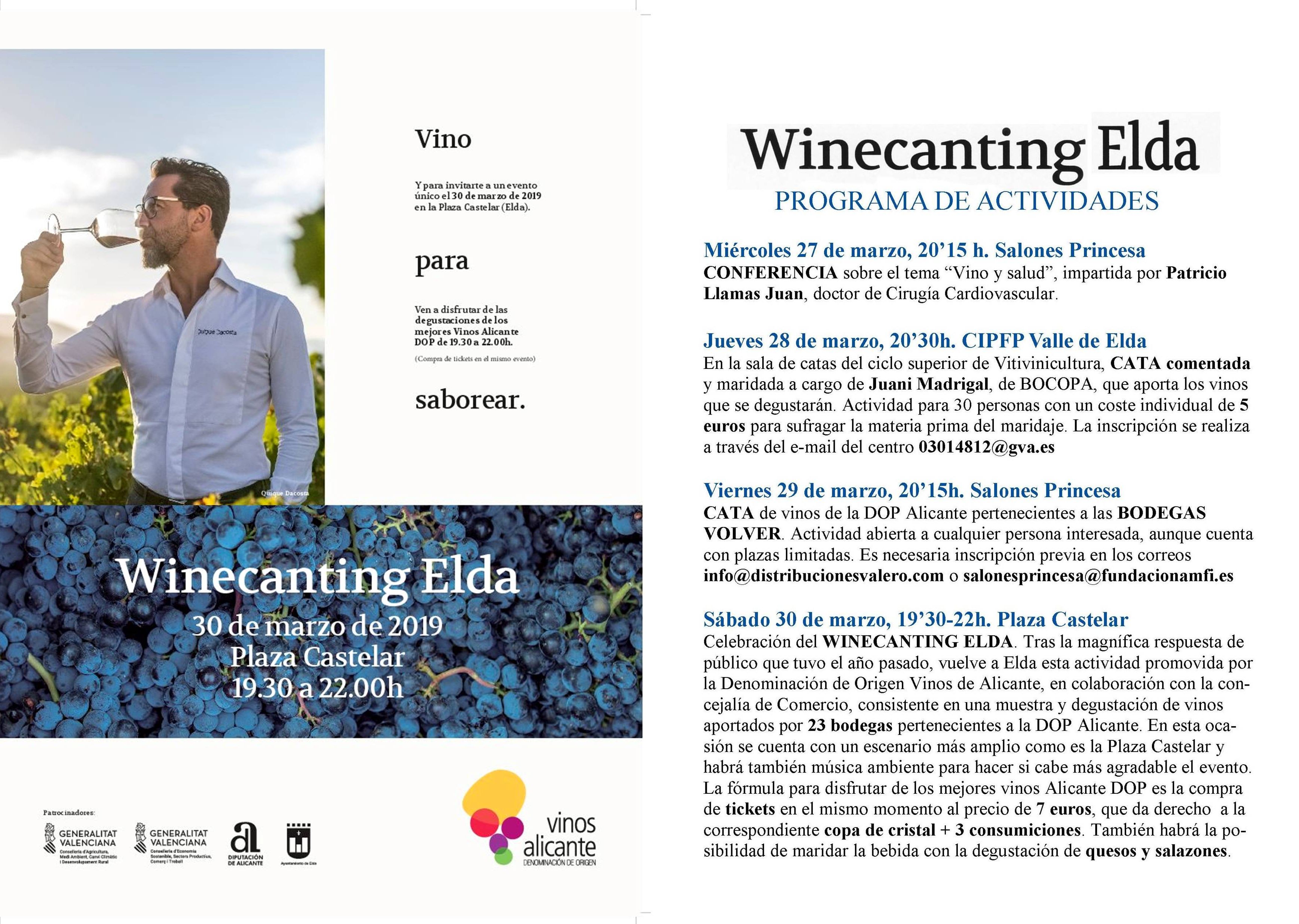 La II edición del ‘Winecanting Elda’ se celebrará el próximo sábado 30 de marzo con una degustación aportada por 23 bodegas pertenecientes a la Denominación de Origen alicantina