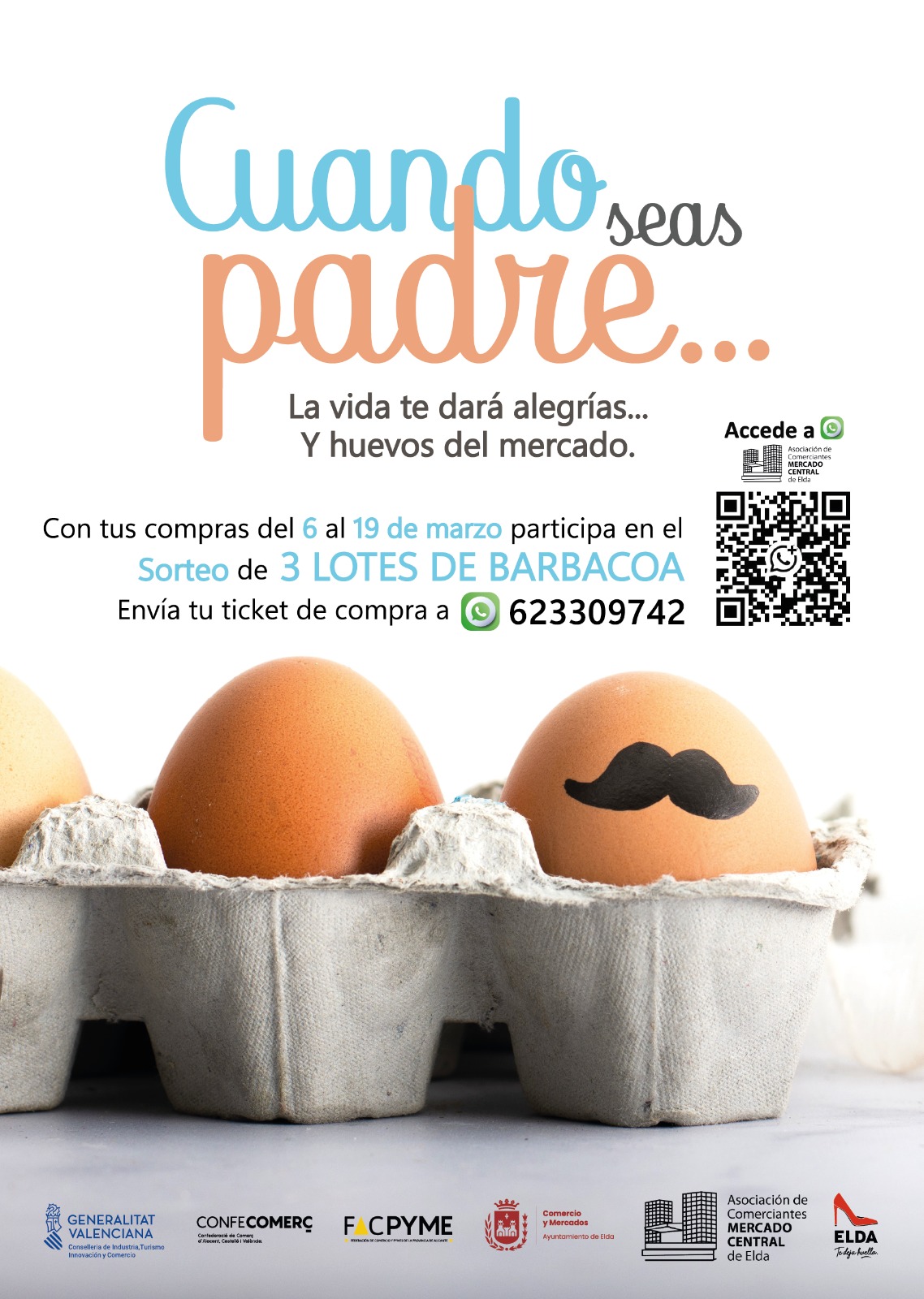 Por su parte, el Mercado Central ha lanzado con el mismo objetivo la campaña ‘Cuando sea padre…’. Los establecimientos pertenecientes a la Asociación de Comerciantes del Mercado Central de Elda sortearán tres lotes de barbacoa enviando una foto del ticket de compra al número de WhatsApp 623 309 742 habilitado para la promoción.