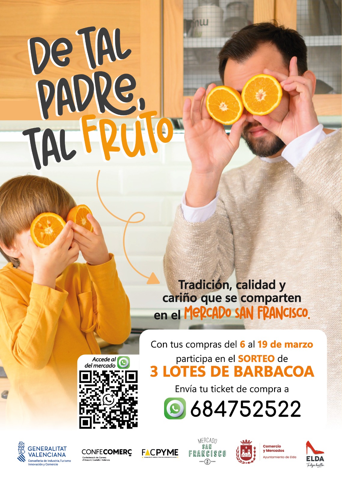 Los Mercados Municipales de Elda han puesto en marcha la campaña que con motivo del Día del Padre han preparado con el objetivo de dinamizar las compras y seguir impulsando la digitalización. El Mercado de San Francisco ha lanzado la campaña, titulada ‘De tal padre, tal fruto’, para destacar la importancia de fortalecer el comercio de proximidad, donde los clientes pueden encontrar tradición, calidad y cariño.
