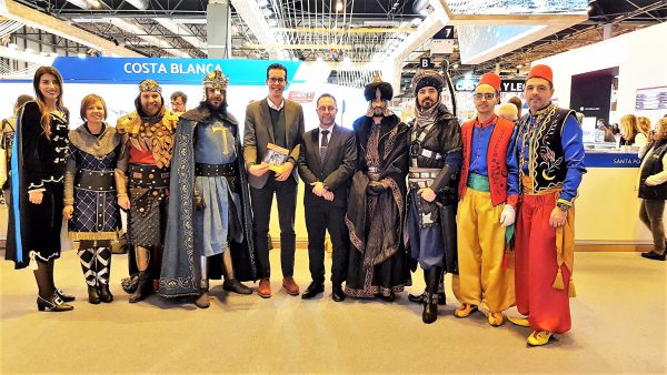 Las fiestas de Moros y Cristianos han vivido una jornada histórica en Fitur al presentar al mundo el folleto promocional del 75 aniversario que se celebra durante 2019. Componentes de la Junta Central de Comparsas, junto a varios comparsistas ataviados con sus respectivos trajes y los embajadores de ambos bandos, se han desplazado a primera hora de la mañana hasta la sede de Ifema (Madrid) en un tren Ave donde han repartido los trípticos entre los pasajeros, quienes también han sido sorprendidos con la representación teatral de una Embajada eldense.