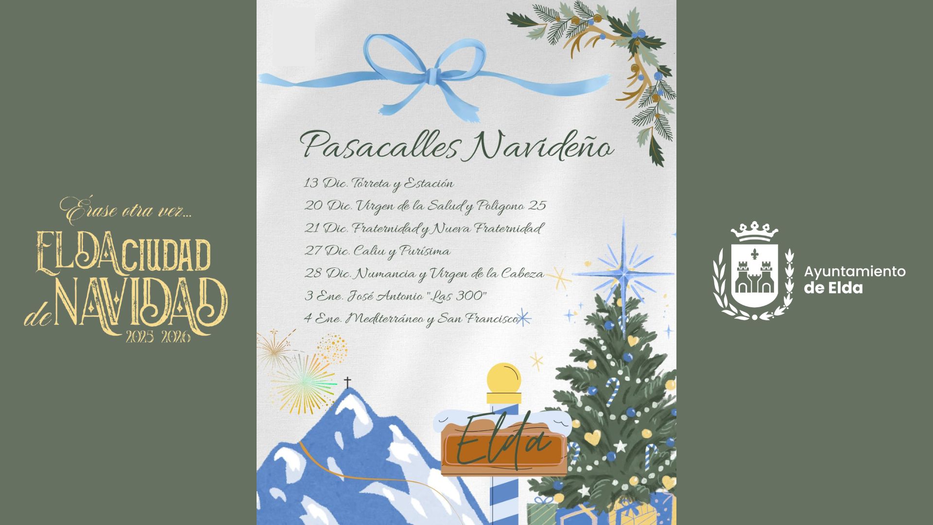La Navidad llegará un año más a los barrios de Elda de la mano de la Concejalía de Participación Ciudadana y en colaboración con las asociaciones de vecinos, tal y como ha anunciado esta mañana la edil del área, Lorena Pedrero. «Un año más, con esta propuesta queremos llegar la Navidad a todos los rincones de la ciudad, llevando la magia, la música y la convivencia. Desde la Concejalía creemos en una Navidad abierta, cercana y participativa».
