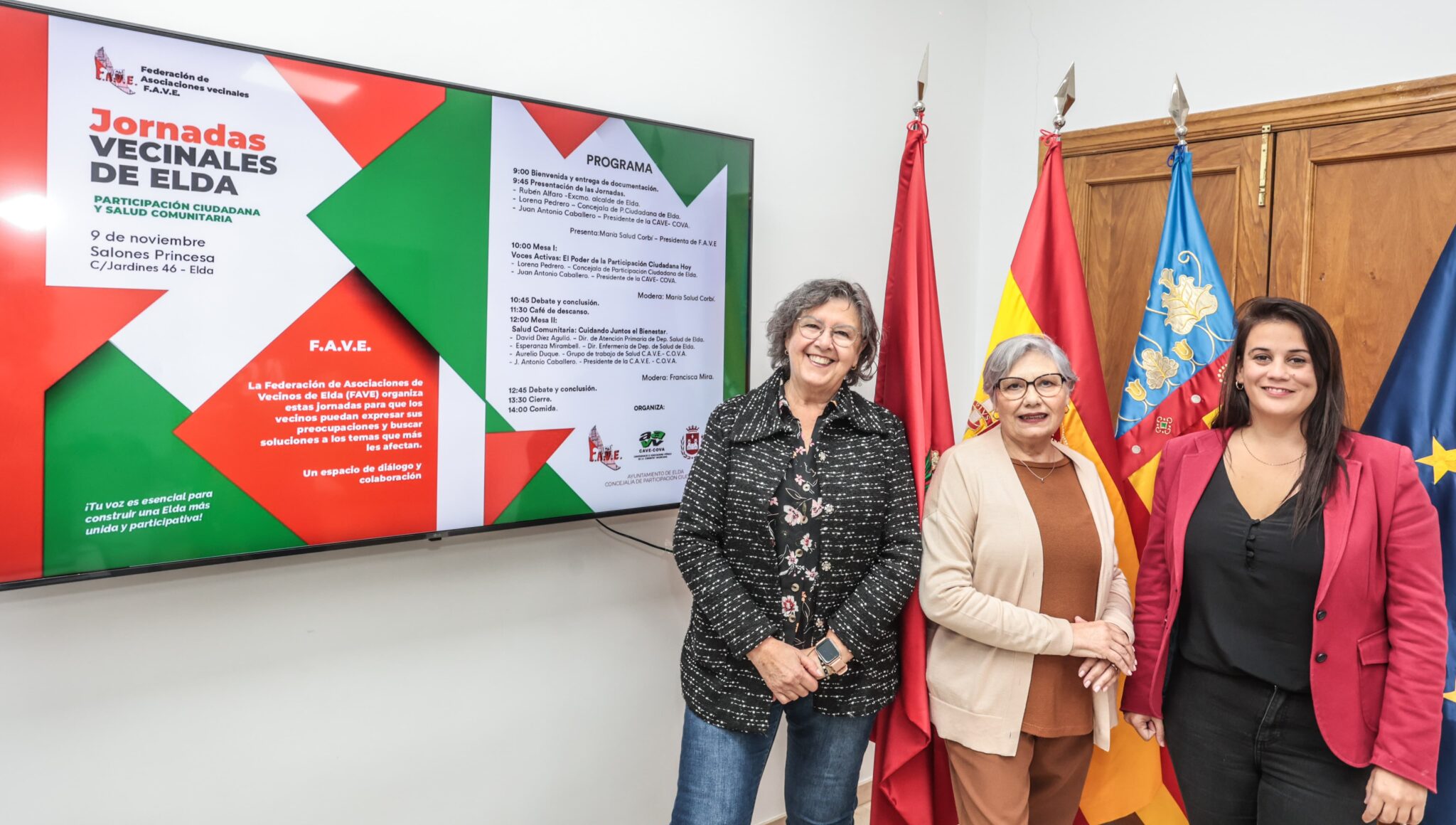 Por su parte, la presidenta de FAVE, María Salud Corbí, ha afirmado que «esta actividad, que se celebrará el sábado 9 de noviembre, de 9.00 a 14.00 horas, forma parte del calendario de la FAVE. Ha sido un proyecto trabajoso, pero seguro que será provechoso. Esta es la cuarta edición de las Jornadas Vecinales de Elda, pero no se celebraban desde hace muchos años».
