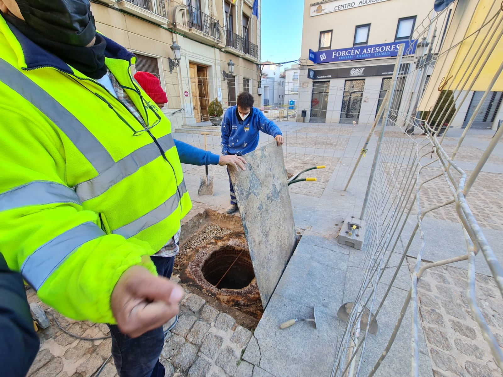 Las obras de remodelación de la Plaza de Arriba que está llevando a cabo el Ayuntamiento de Elda continúan descubriendo fragmentos de la historia de la ciudad sepultados por capas de tierra y el paso del tiempo. En ese sentido, si hace apenas un mes salió a la luz una entrada al refugio antiaéreo de la Guerra Civil situado en la propia Plaza de Arriba, esta misma mañana se ha localizado y descubierto un nuevo acceso a esta galería subterránea situado en la Plaza de la Constitución, frente al propio Ayuntamiento de la ciudad.