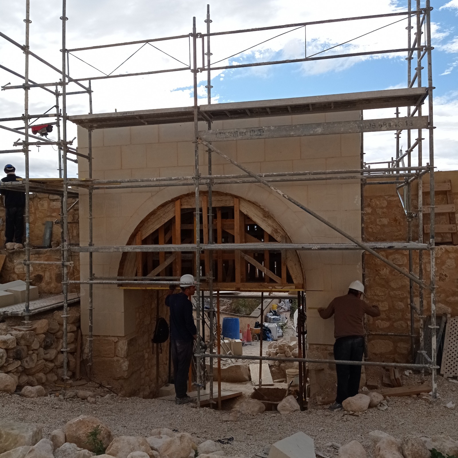Para la reconstrucción de la puerta de acceso, los técnicos han realizado una cimentación nueva sobre la que se ha asentado el arco con la instalación de los sillares, utilizando todos los elementos constructivos que se han podido recuperar durante la excavación.