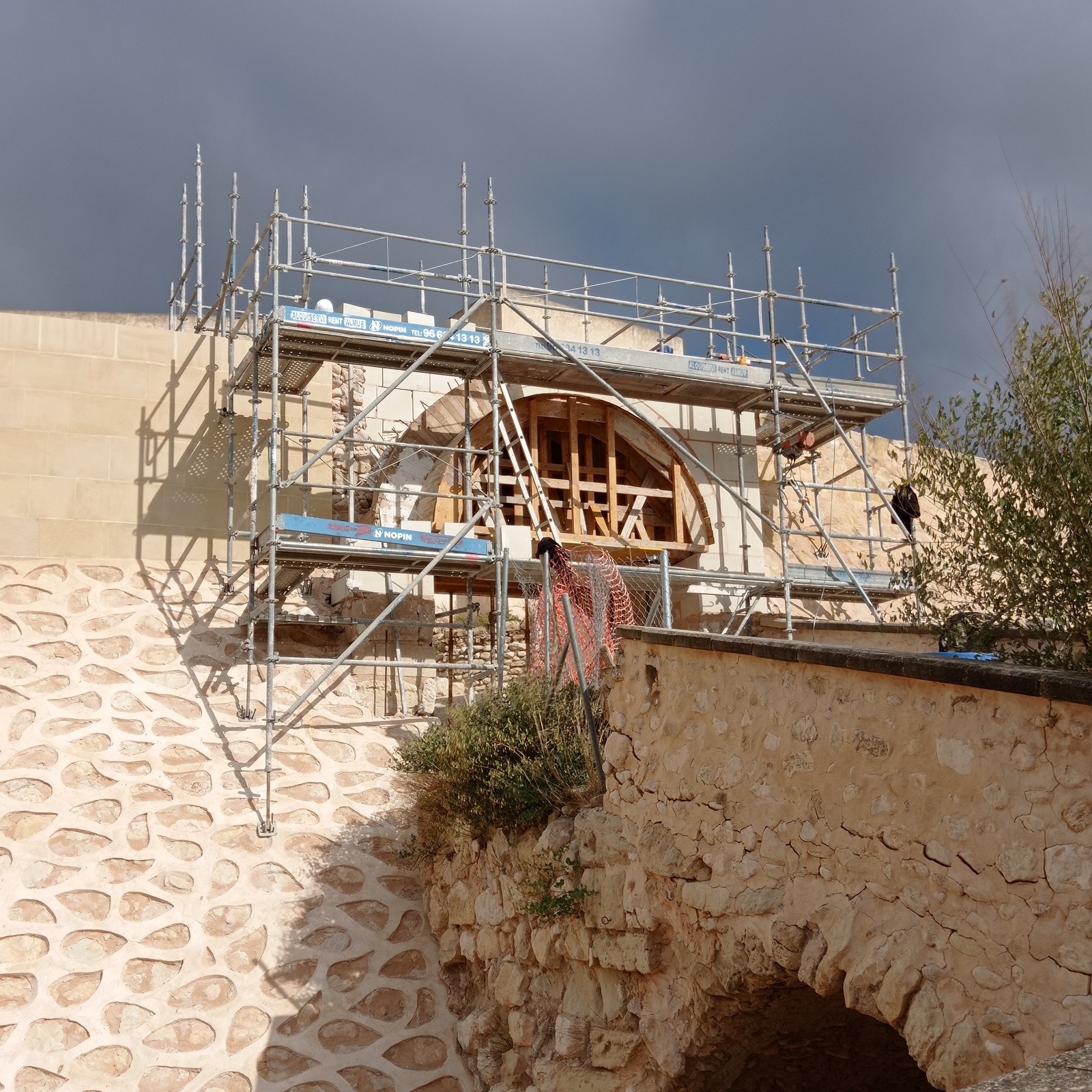Las obras de restauración de la puerta del antemural del Castillo de Elda se encuentran ya en la última fase de ejecución. La empresa adjudicataria Sydca XXI está colocando la sillería y las piezas específicas del arco de entrada y de la coronación del monumento, requisito imprescindible antes de aplicar los tratamientos finales, la instalación del umbral de entrada y el pavimento de guijarros para completar este acceso al monumento B.I.C., construido entre fines del siglo XV y las primeras décadas del siglo XVI, probablemente obra de la familia Coloma. Se finalizará así una intervención clave para la recuperación y futura visita al alcázar eldense.