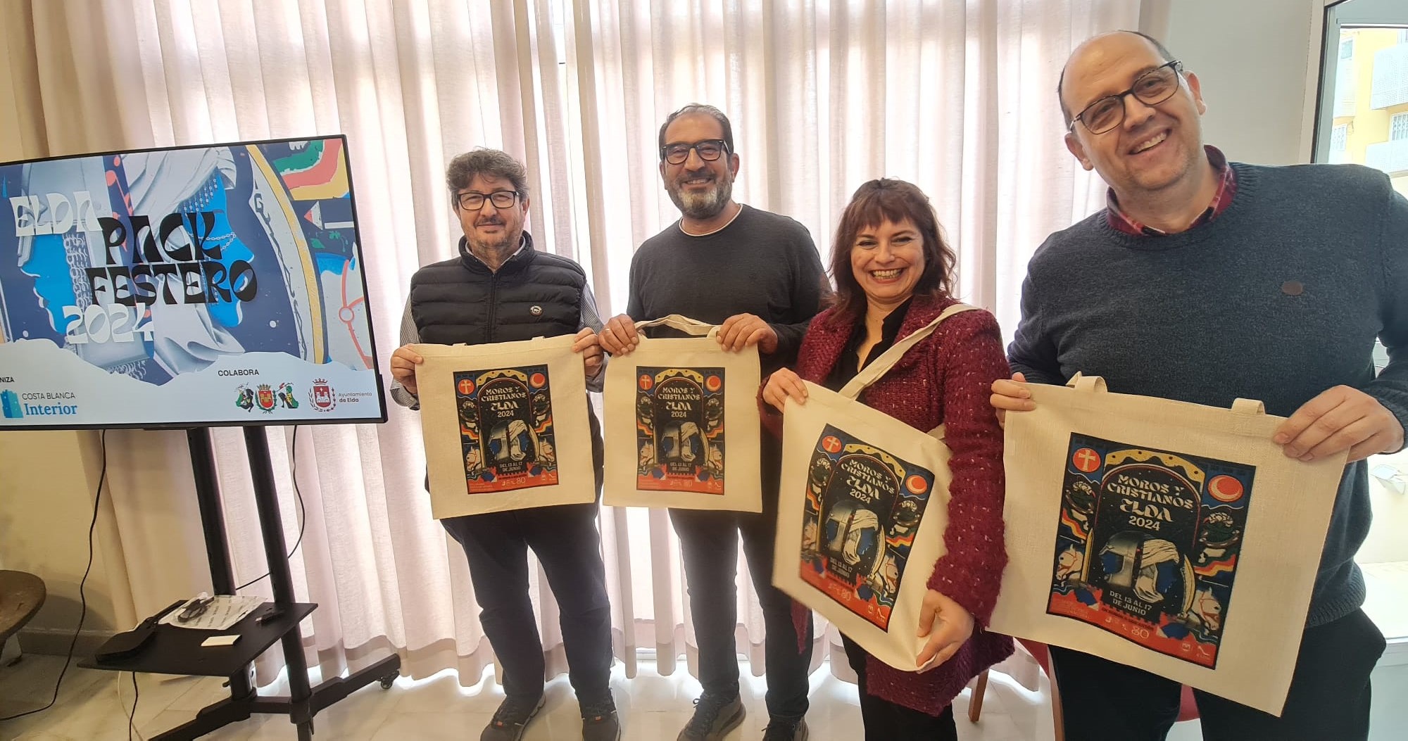 Por otra parte, esta mañana también se han presentado unas bolsas de tela tematizadas con el cartel oficial de las fiestas de Moros y Cristianos 2024. Se trata de un producto que estará disponible hasta agotar existencias en la Tourist Info de Elda.