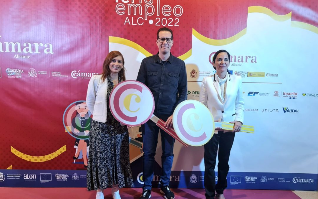 En este sentido, Eva Miñano ha animado a los participantes a aprovechar las herramientas que la Cámara pone a su disposición para lograr un empleo. Así ha recordado que la Cámara, tal y como se ha puesto de manifiesto durante la jornada, “cuenta con una Bolsa de Empleo y Talento de la provincia de Alicante, que se puso en marcha en la primera feria de empleo que realizamos hace ahora un año. En este momento contamos con 26 ofertas de empleo abiertas y más de mil jóvenes candidatos incorporados en diferentes procesos de selección de personal”.