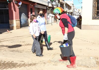 Igualmente, varias voluntarias desplazadas hoy desde Elda se han vestido de payasas para animar a los niños y niñas de Sedaví y arrancarles una sonrisa que les haga más llevadera la difícil situación que están viviendo. Esta prevista que este grupo de voluntarias regrese el martes.