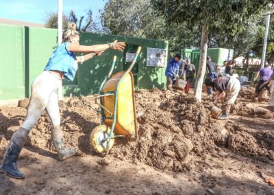 En Sedaví, los voluntarios de Elda han trabajado codo con codo con miembros del Ejército en las labores de limpieza del colegio antes mencionado, cuyas instalaciones se han visto totalmente afectadas por las inundaciones.