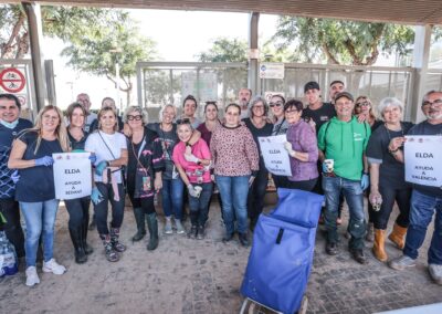 En el operativo solidario, coordinado por la concejalas de Solidaridad y de Juventud, Anabel García, y de Educación, María Gisbert, han participado también voluntarios y voluntarias de Protección Civil de Elda, con su jefa Ana Rosa Gómez al frente, que se han encargado de acompañar y ayudar a los integrantes de la expedición.