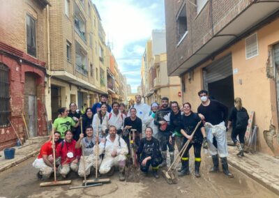 Más de 160 voluntarios y voluntarias eldenses se han desplazado hoy hasta Sedaví para ayudar en labores de limpieza de calles y viviendas, así como el Juzgado de Paz y un centro educativo de la localidad valenciana, situada en de las zonas más afectadas por las inundaciones provocadas por la DANA. Además de en Sedaví, varios grupos de voluntarios se han desplazado caminando hasta los municipios de Paiporta y Alfafar, que se encuentran a muy corta distancia, para colaborar también allí.