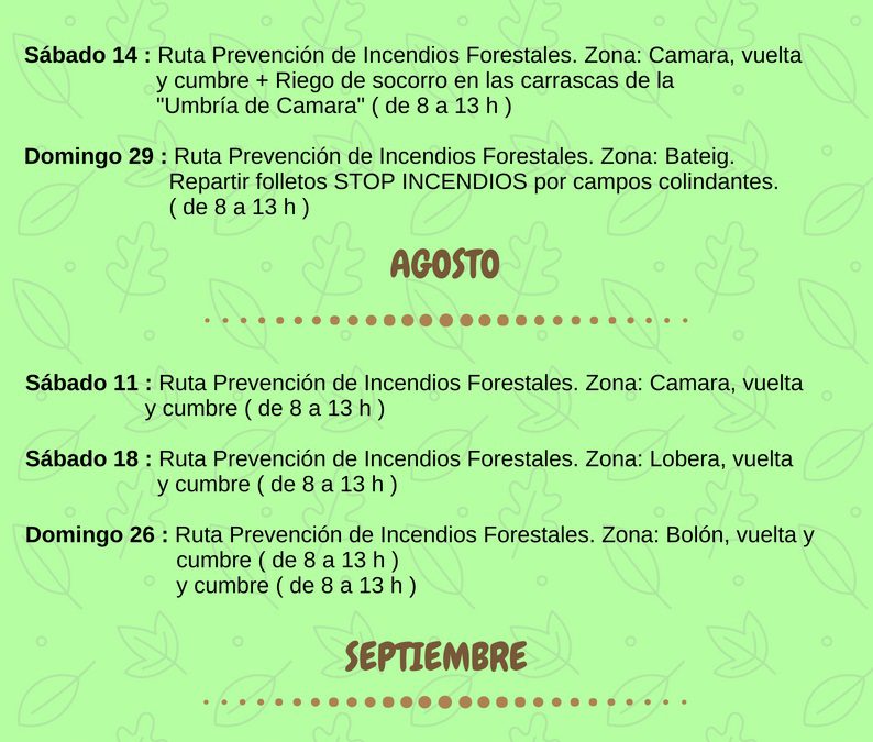 Los interesados pueden sumarse a esta iniciativa y se han organizado rutas de prevención po diferentes parajes durante julio, agosto y septiembre.
