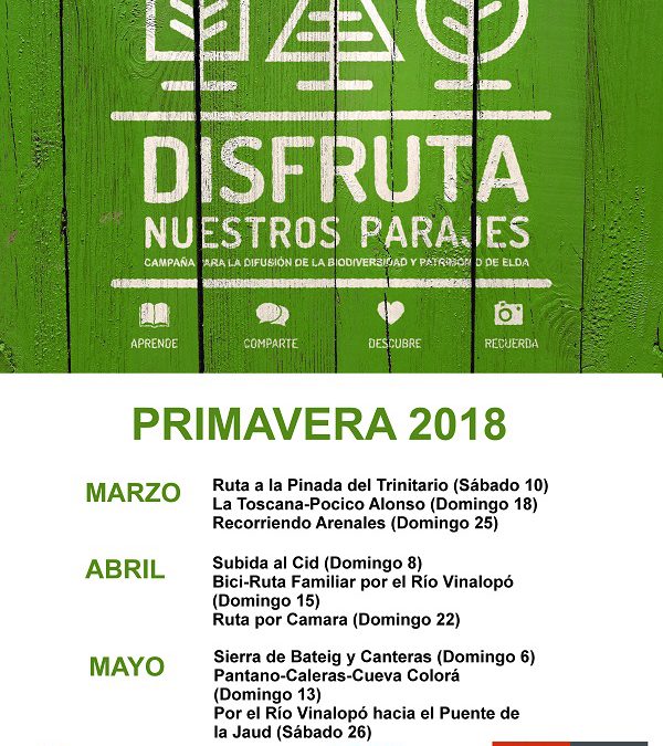 La concejalía de Medio Ambiente presentó ayer las uevas rutas del programa “Disfruta nuestros parajes”, para la primavera de 2018; unas rutas que, como ha indicado la edil de Medio Ambiente, Pilar Calpena, tienen como objetivo “ofrecer una alternativa de ocio medioambiental mientras damos a conocer el patrimonio de Elda”.