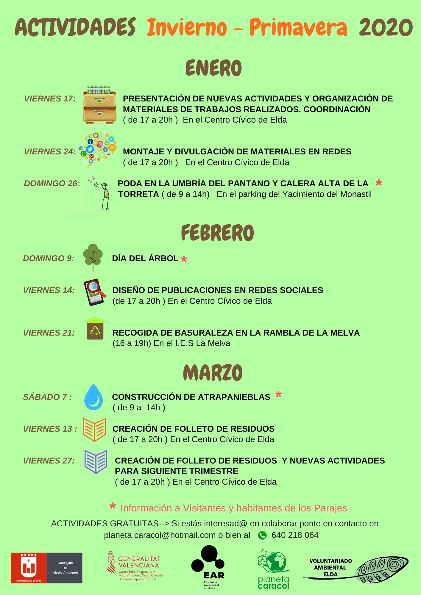 Los ciudadanos y ciudadanas interesadas pueden acudir a la Concejalía de Medio Ambiente o contactar por teléfono llamando al 640 218 064 o por el correo electrónico planeta.caracol@hotmail.com