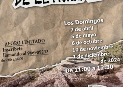 En este sentido, los asistentes se convertirán en investigadores por un día y a través de los códigos QR capturarán información que al finalizar compartirán con su equipo. Esta aventura arqueológica se realizará los domingos 7 de abril, 5 de mayo, 6 de octubre, 10 de noviembre y 1 de diciembre, en horario de 11.00 a 12.30 horas. El aforo es limitado y los interesados e interesadas pueden inscribirse llamando al 966 989 233 en horario de 9.00 a 14.00 horas.