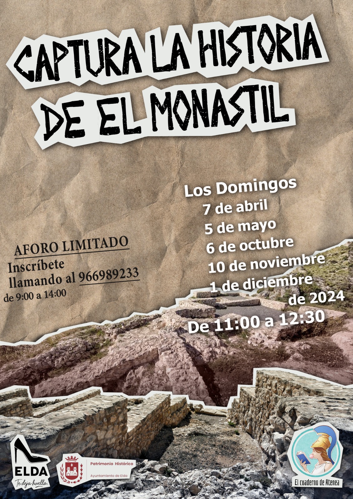 El Ayuntamiento de Elda, a través de la Concejalía de Patrimonio Histórico, recupera a partir del próximo 7 de abril la actividad ‘Captura la historia de El Monastil’ con el objetivo de profundizar en las características del yacimiento arqueológico. Se trata de un taller que está pensado para disfrutar en familia de forma divertida mientras descubrimos la historia y conocemos nuestro patrimonio histórico.