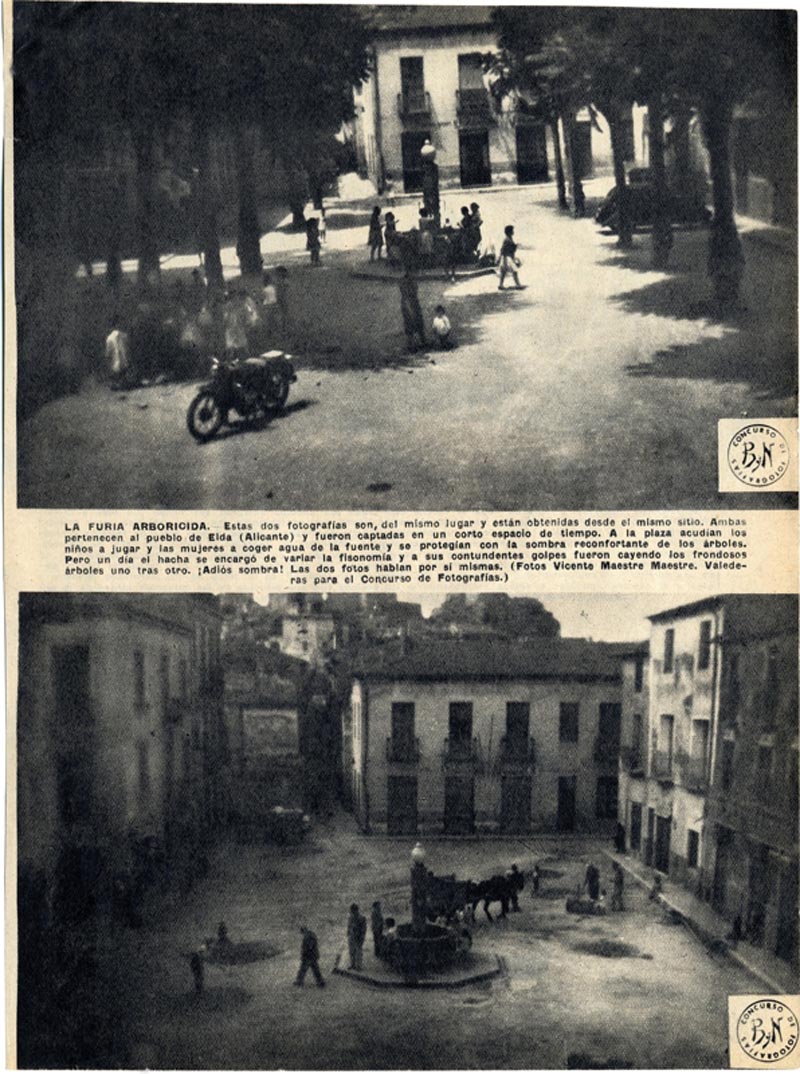 La plaza de Arriba fue uno de los primeros lugares donde se proyectó cine en Elda, a inicios del siglo XX. En su subsuelo, todavía se conserva un refugio antiaéreo construido en 1938, durante la Guerra Civil. También se ubicó el Auxilio Social desde la posguerra, y ha albergado reconocidos negocios y comercios de la Elda tradicional. En las últimas décadas del siglo XX su configuración como plaza se fue diluyendo, al haberse efectuado operaciones de apertura y reforma de calles y plazas que modificaron profundamente su imagen secular.