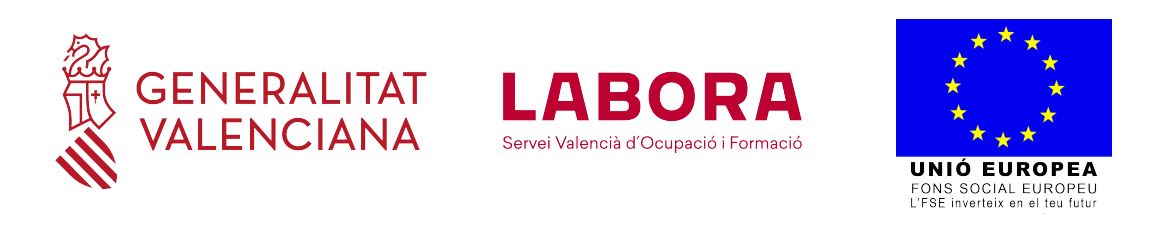 Actuación cofinanciada por la Unión Europea a través del Programa Operativo del Fondo Social Europeo (FSE) de la Comunitat Valenciana 2014-2020.