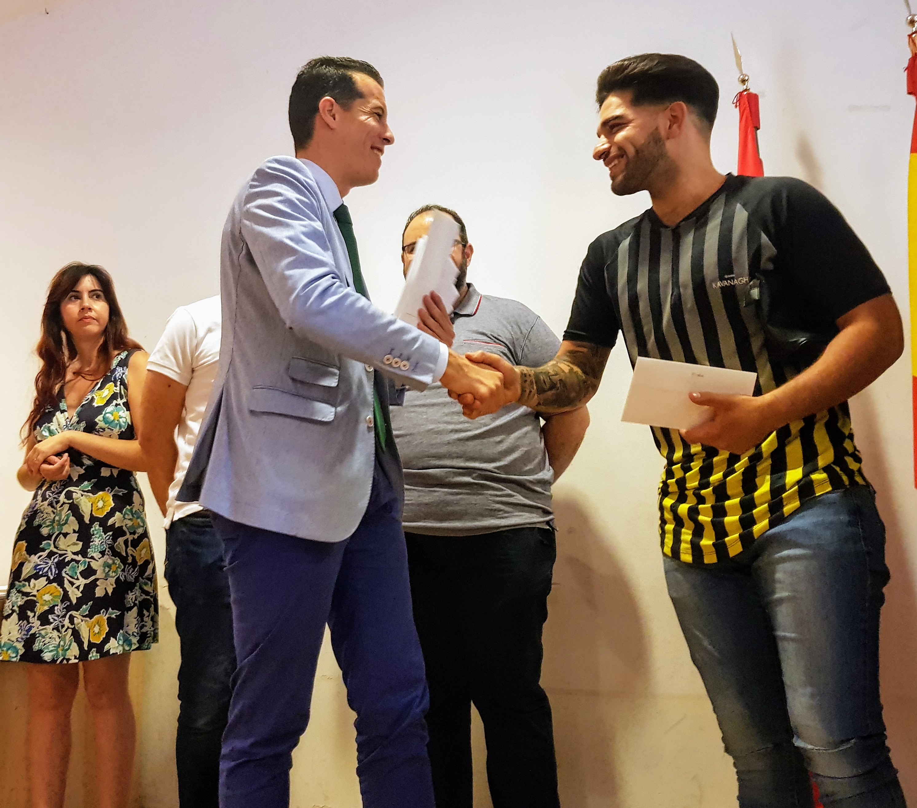 El alcalde de Elda ha pedido a todos los chicos y chicas que no se desanimen en la búsqueda de empleo, y junto a los concejales que le han acompañado en el acto les ha entregado una carta de recomendación