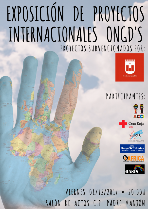Las ONG’s participantes son ACCI, Cruz Roja de Elda, Karit, Manos Unidas, Africa y Oasis, que llevarán a cabo cada una un proyecto internacional diferente, gracias a dicha subvención que, el año pasado, fue de un total de 45.000€.