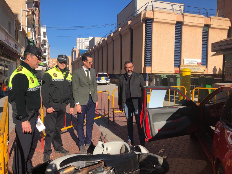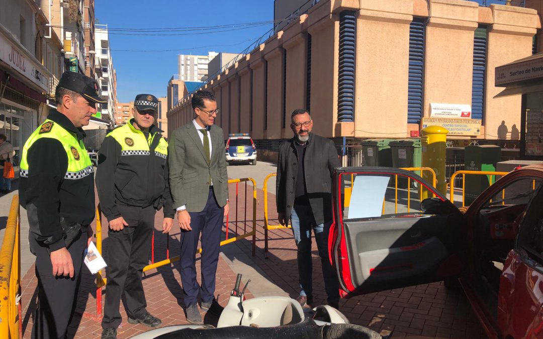 Asimismo, para la escenografía, que se encuentra en la esquina de la calle Reyes Católicos del Mercado Central, se ha utilizado un coche siniestrado con una moto, que estará hasta las 20 horas de esta tarde.