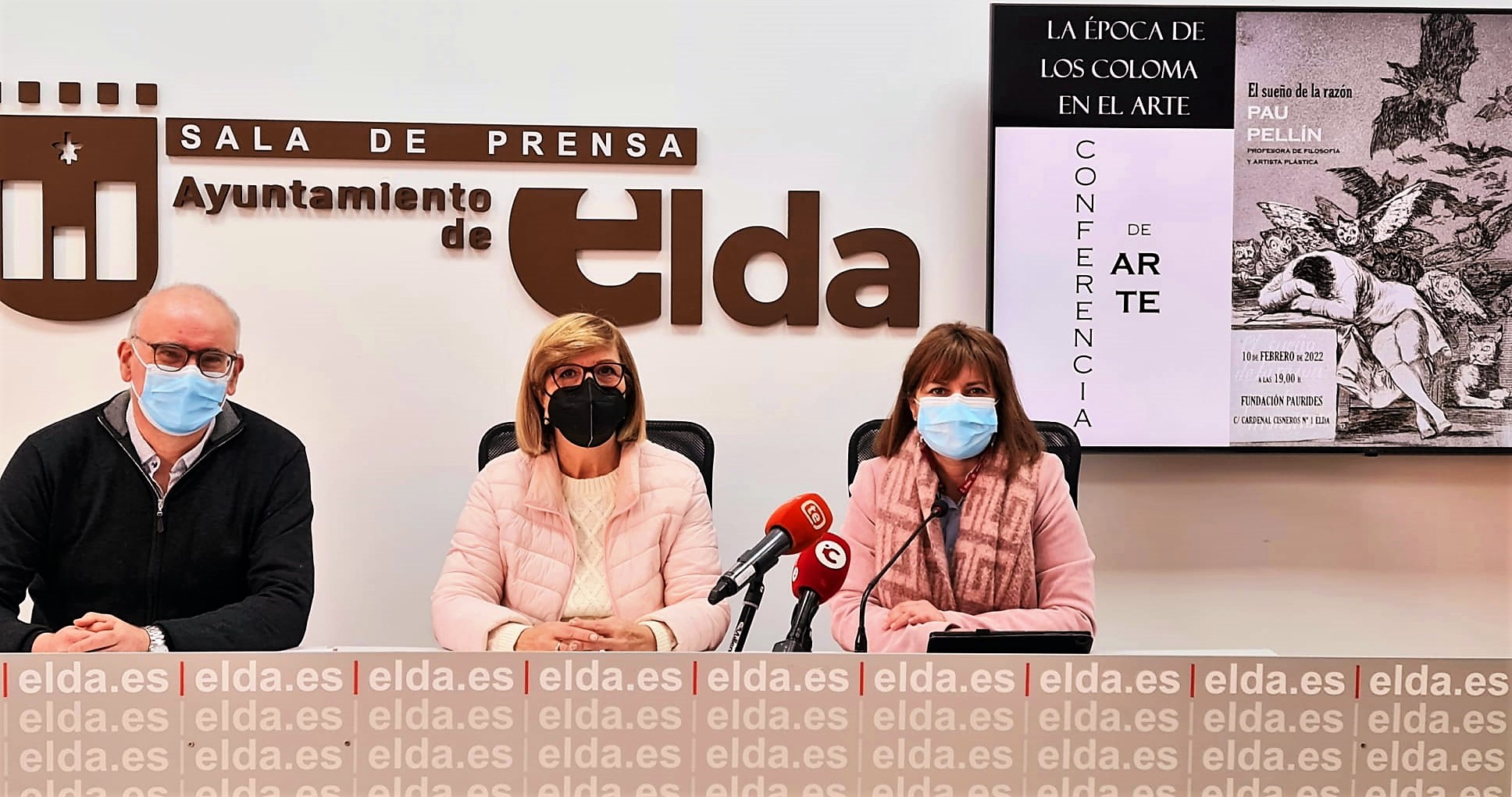 Un ciclo de conferencias organizado por la Asociación Cadmio, en colaboración con la Fundación Paurides y el Ayuntamiento de Elda, abordará el arte en la época de la Familia Coloma. La concejala de Cultura, Rosa Vidal, acompañada de Candy López, en representación de la Asociación Cadmio, y de Emilio Maestre, presidente de la Fundación Paurides, ha presentado esta actividad que se enmarca en los actos de celebración del Año Coloma.