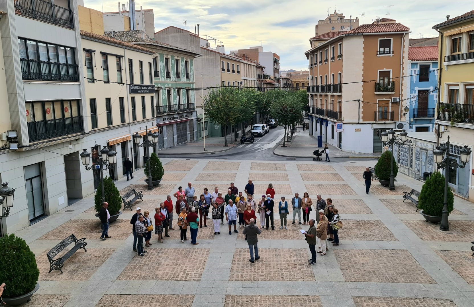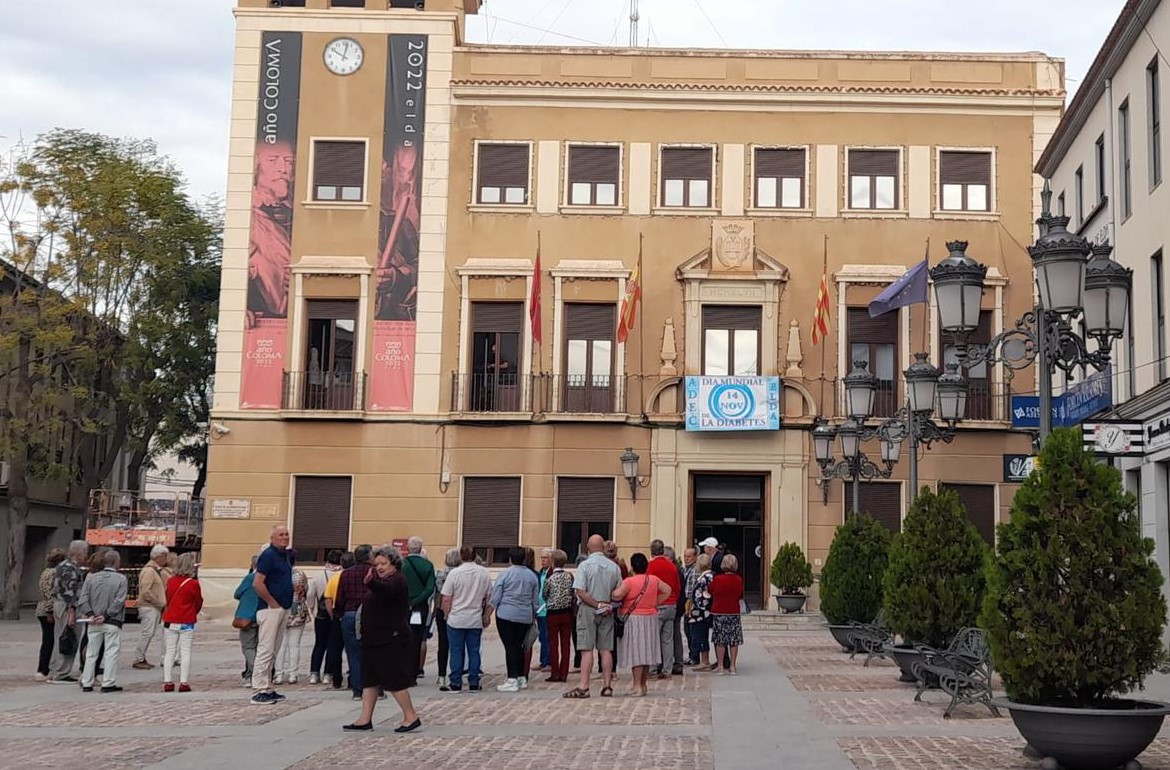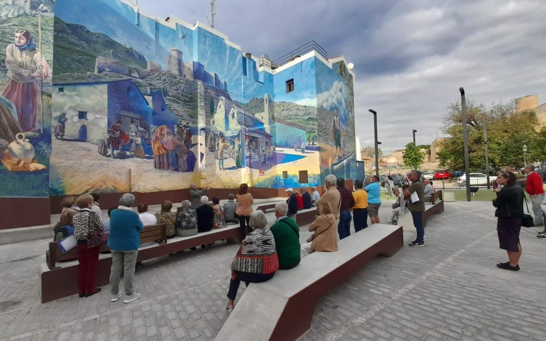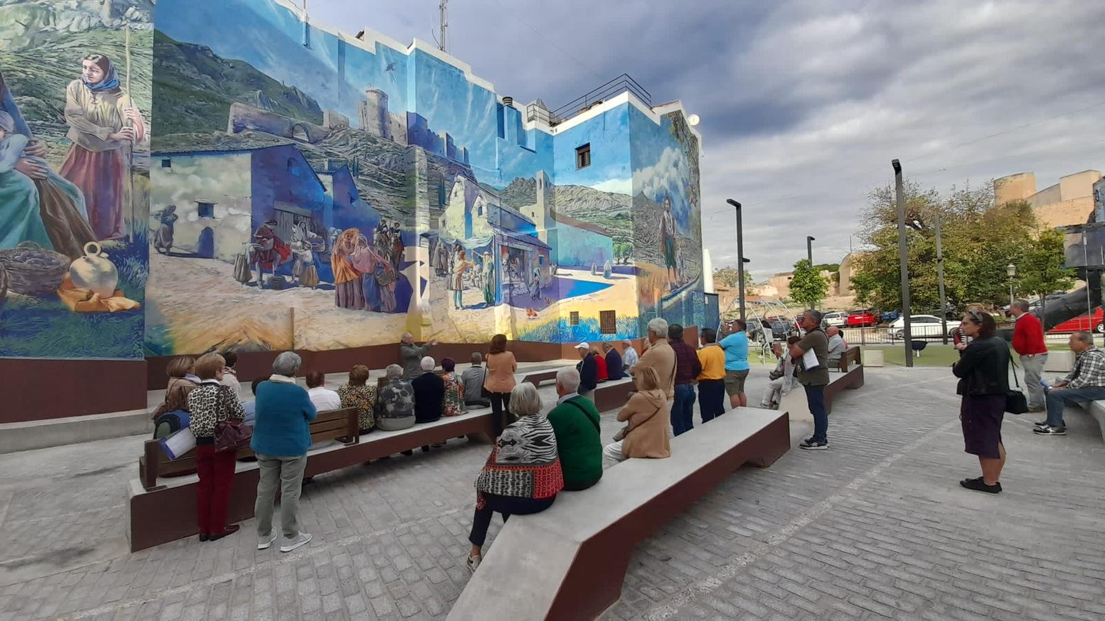 Un grupo de turistas procedentes de Vigo ha visitado esta mañana Elda para conocer el casco antiguo y la zona comercial de la ciudad. Los visitantes, que se alojan en Benidorm y han llegado a la ciudad en un autobús, han recorrido en primer lugar la Plaza de Arriba, donde han podido contemplar el mural que recrea cómo era la ciudad entre los siglos XVI y XVIII.