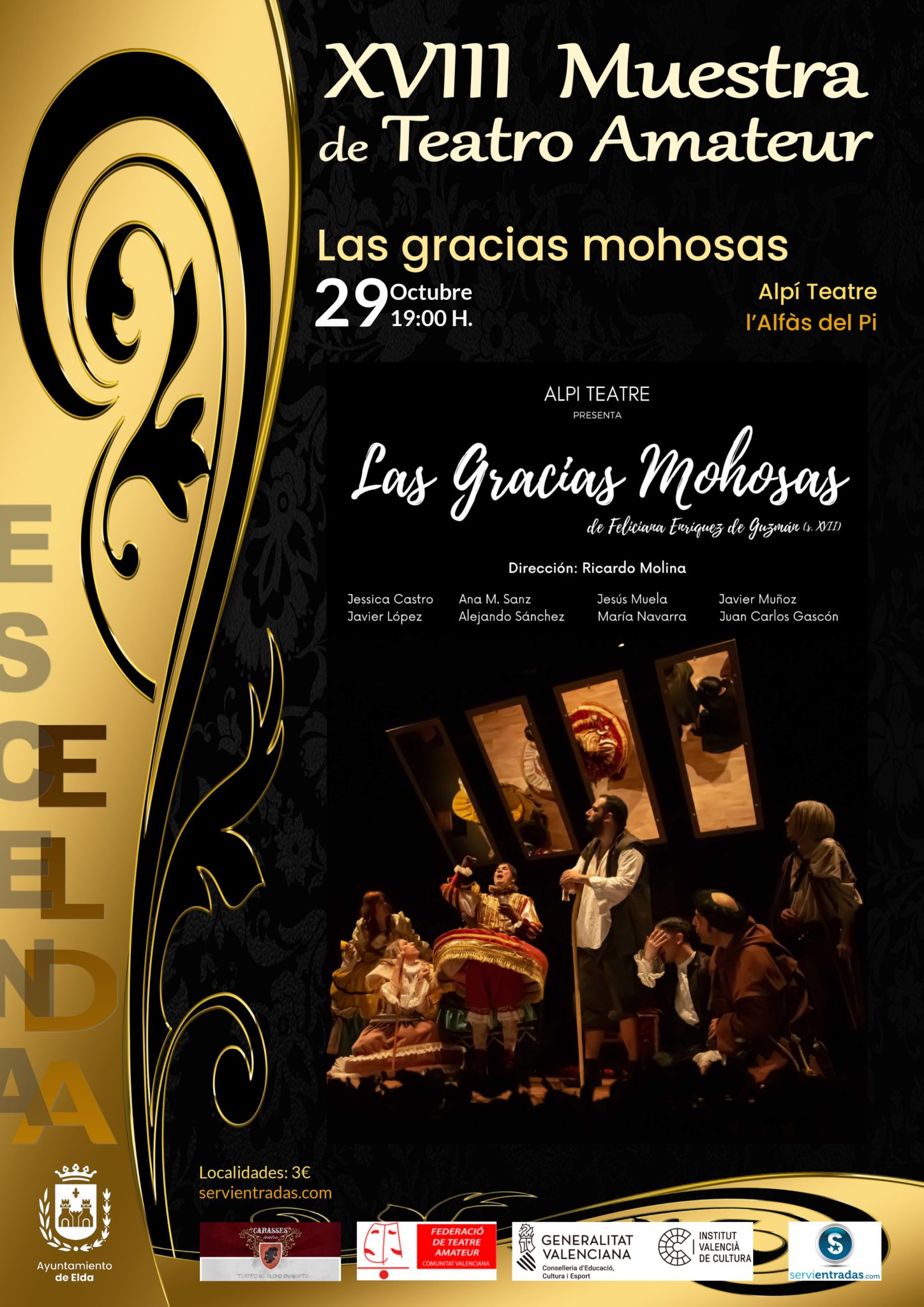 29 de octubre, ‘Las Gracias Mohosas‘, de Alpi Teatro (Alfaz del Pi). Una obra de teatro clásico, del siglo XVII y escrita por una mujer: Feliciana Enriquez de Guzmán.