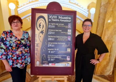 El Teatro Castelar acogerá los fines de semana del 21 de octubre al 5 de noviembre de la Muestra Escena Elda que este año cumple su edición número 18. La concejala de Teatro, Rosa Vidal, junto Sacra Leal, de Carasses Teatro, han dado a conocer los detalles de un certamen teatral que este año ha recibido un total de 87 obras, de las que han sido finalmente seleccionadas cinco.