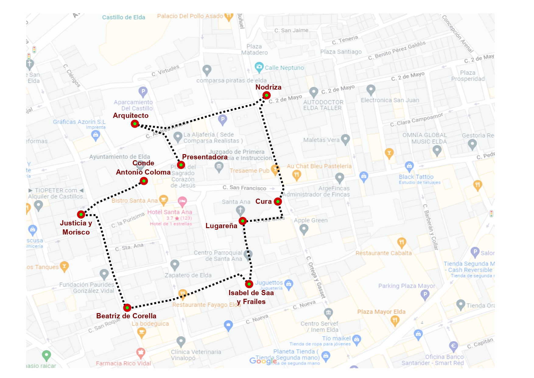 La edil ha explicado que “esta actividad, que se va a llevar a cabo con la colaboración del grupo teatral eldense Carasses y con guion de Sacra Leal, consta de un total de 9 paradas o etapas en las que, diversos personajes lugareños y de la aristocracia de la época nos van a instruir sobre cuestiones relacionadas con el Castillo-Palacio de Elda, la vida cotidiana en el mismo, los mercados de la Plaza de Arriba, la relación de los Coloma con el clero y la iglesia, la construcción de un hospital un convento y una capilla, la expulsión de los moriscos y su posterior repoblación con inmigrantes de otras zonas”.