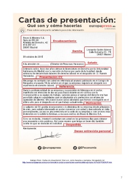 Europa Press. Cartas de presentación: Qué son, cómo hacerlas y ejemplos. Recuperado de: http://www.europapress.es/economia/noticia-cartas-presentacion-son-hacerlas-ejemplos-20160317090107.html 7