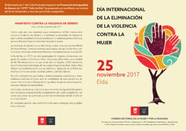de Género del CIPFP “Valle de Elda” ha preparado un manifi esto con motivo DÍA INTERNACIONAL